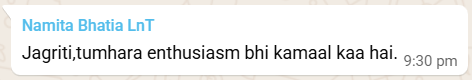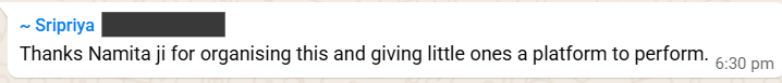 First and foremost, I would like to express my heartfelt thanks to Ms. Namita for organizing this wonderful event and giving us such a meaningful opportunity.