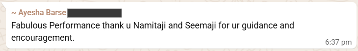 I would like to thank Namita ji for her constant support and encouragement. Without her belief and guidance, the success of this program would not have been possible.